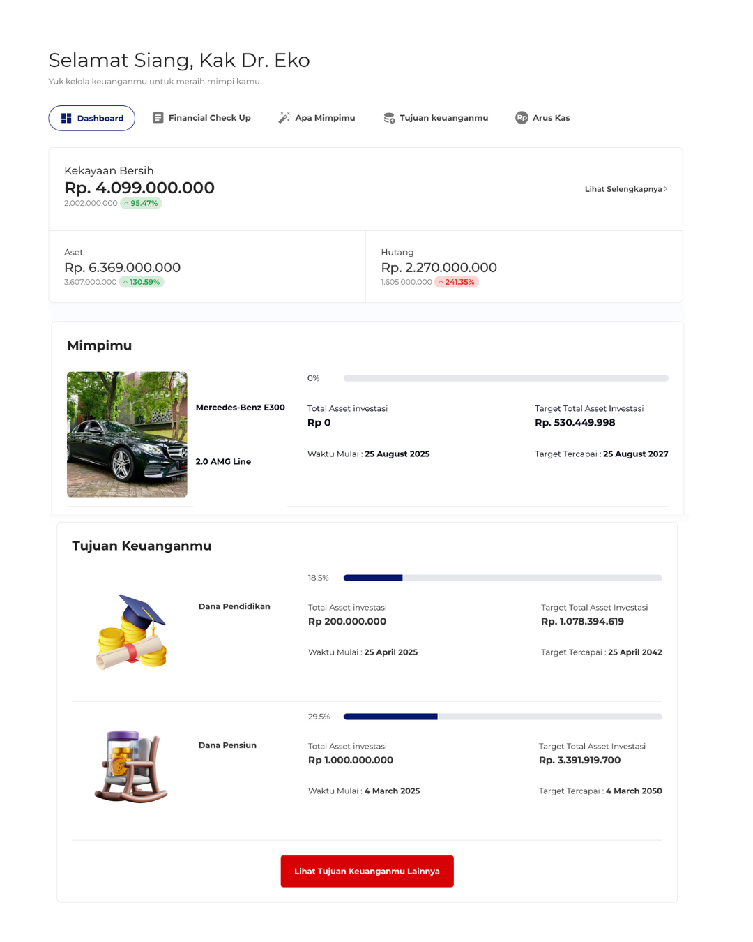 Semua proses ini disajikan dalam dashboard terintegrasi yang memudahkan Anda memantau nilai kekayaan dan rencana distribusinya secara jelas.
