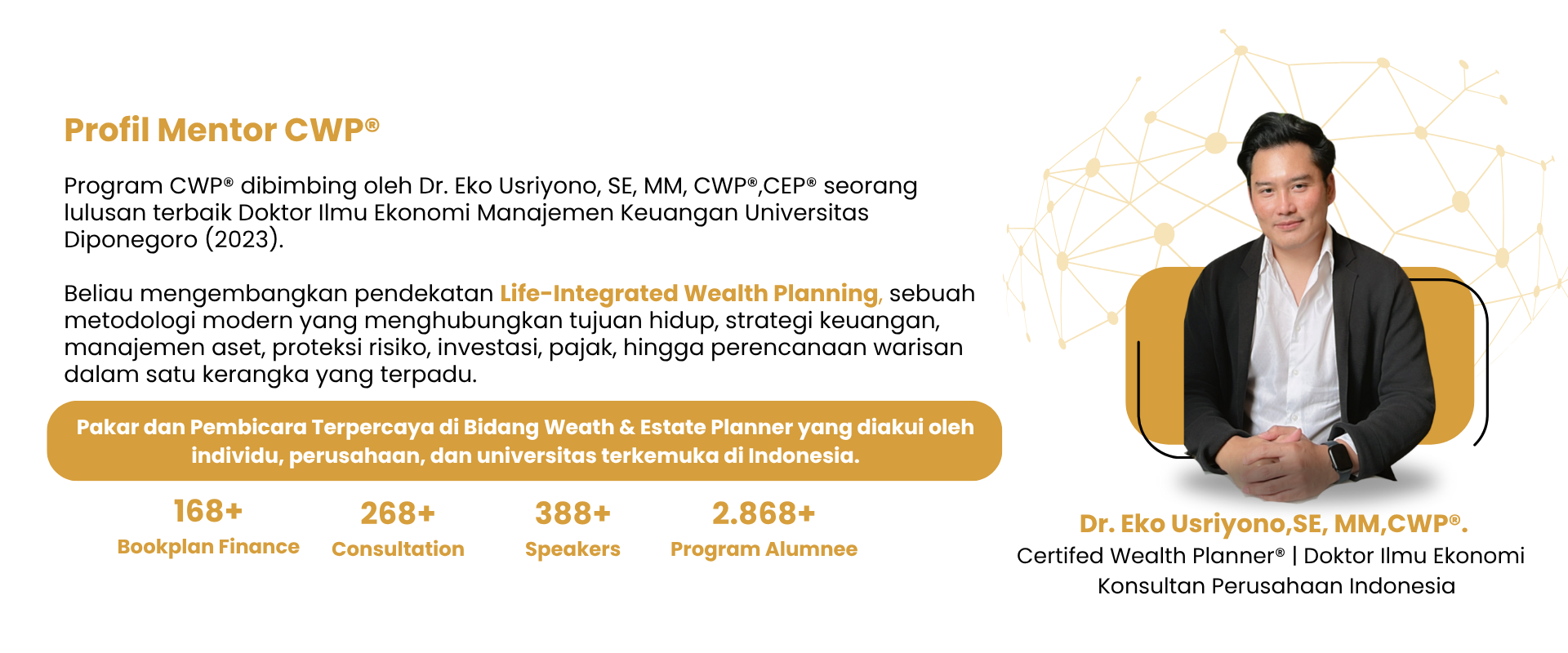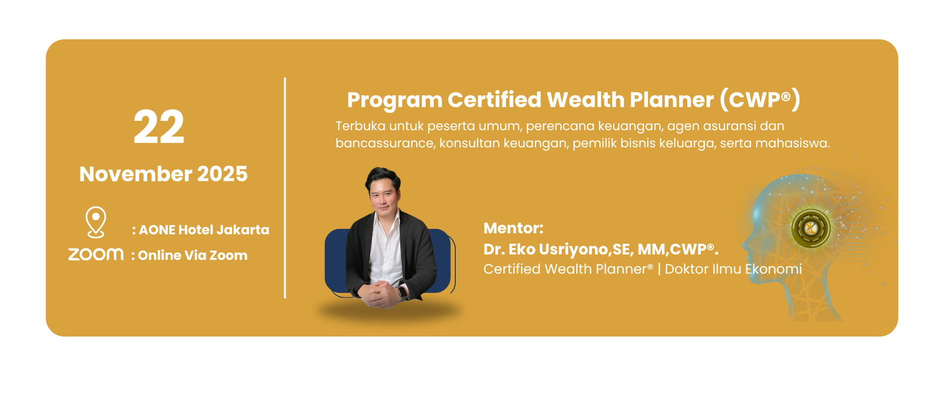 Selamat datang di Certified Wealth Planner (CWP®) Program profesional Pendidikan dan Pelatihan Perencanaan Kekayaan berbasis Life-Integrated Wealth Planning.
