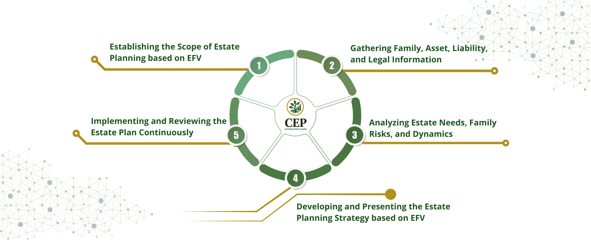 Setiap rencana warisan disusun berdasarkan kepentingan jangka panjang keluarga secara keseluruhan, bukan kepentingan pihak tertentu. CEP® harus memegang teguh prinsip Economic Family Value (EFV) dalam setiap strategi yang dibuat.