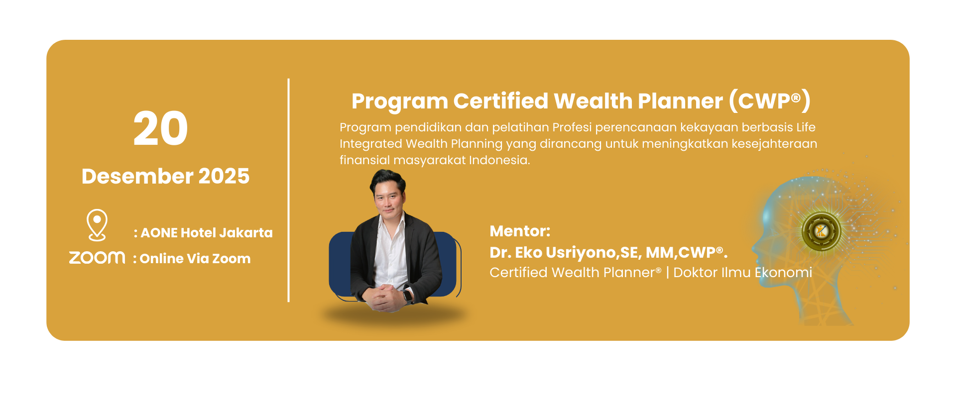Selamat datang di Certified Wealth Planner (CWP®) Program profesional Pendidikan dan Pelatihan Perencanaan Kekayaan berbasis Life-Integrated Wealth Planning.